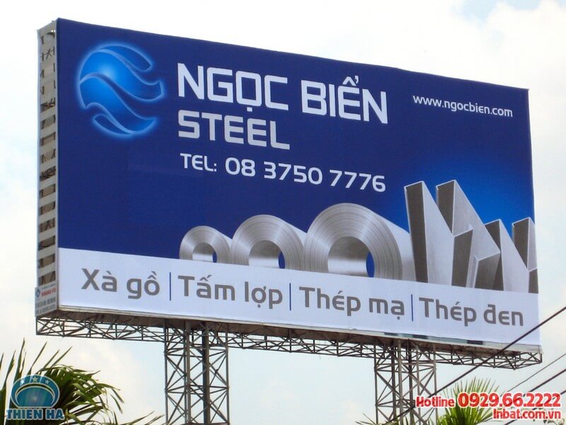 In biển quảng cáo Thiên Hà có rất nhiều kích thước, chất liệu khác nhau. Chúng tôi sẽ căn cứ vào từng không gian và mục đích sử dụng của khách hàng để tư vấn cho các bạn những loại chất liệu in biển và kích thước biển phù hợp nhất. Một trong những nguyên vật liệu dùng để in biển quảng cáo mà Thiên Hà đang sử dụng phổ biến nhất hiện nay đó chính là vải bạt hiflex. Bởi nó có tính năng bền dẻo, bám màu lâu, kháng nước tốt, thích hợp với việc in ấn cho biển quảng cáo ngoài trời.
